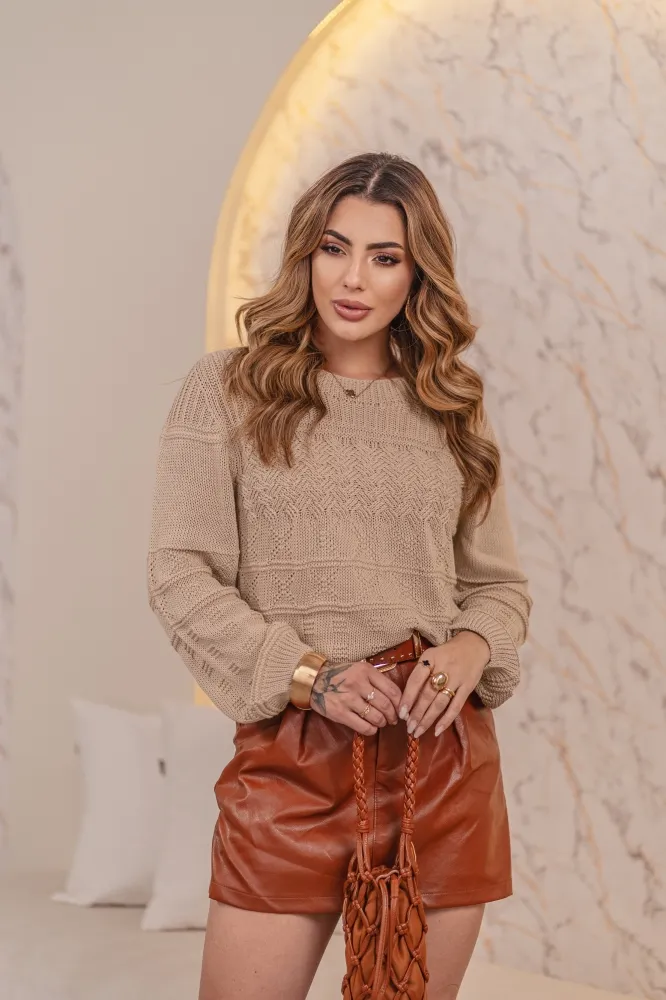 Croped sem costuas, fio poliester, composição 100% poliester, com desenhos em links Tam M